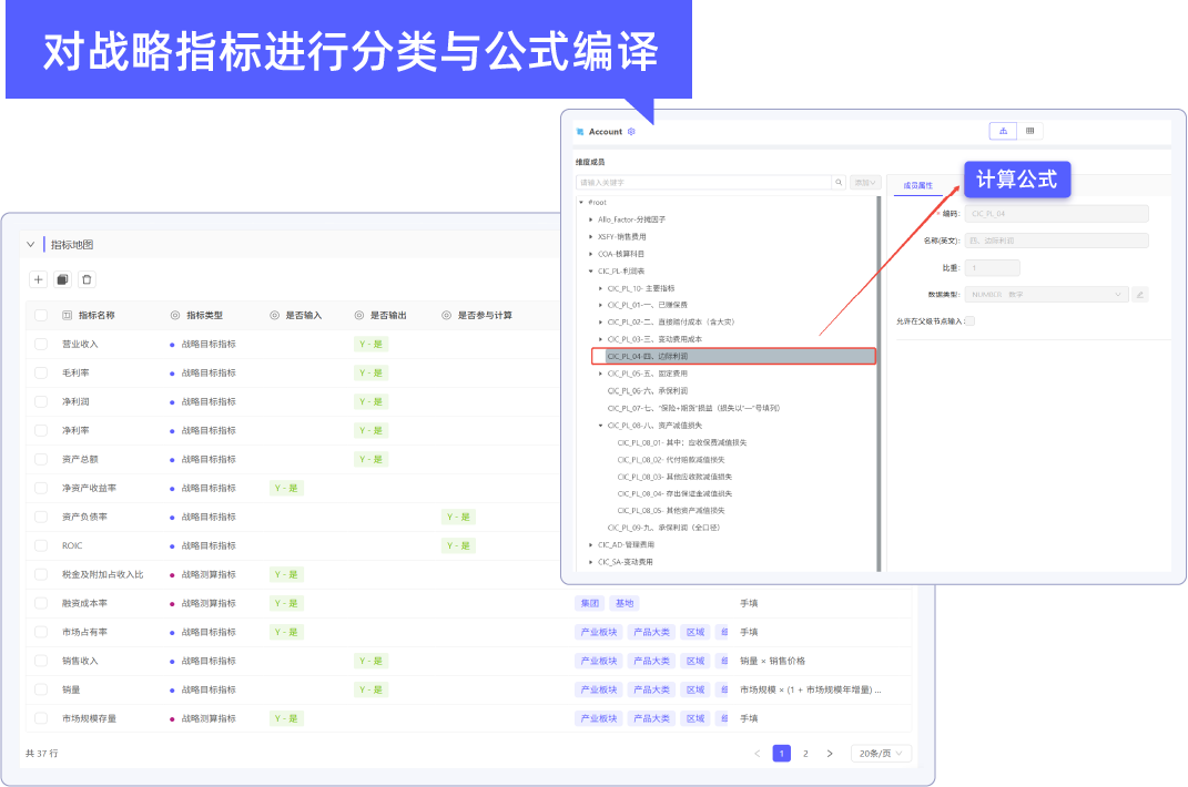 先胜为其搭建分类明确的战略指标体系,将毛利率、净利润等输出类指标关联自动计算公式,仅开放输入类指标录入权限;通过共用指标组织树,实现中长期战略与年度预算的颗粒度对齐,让集团战略目标拆解为各基地、各事业部的可执行预算指标,推动战略落地从“模糊指引”转为“量化管控”。