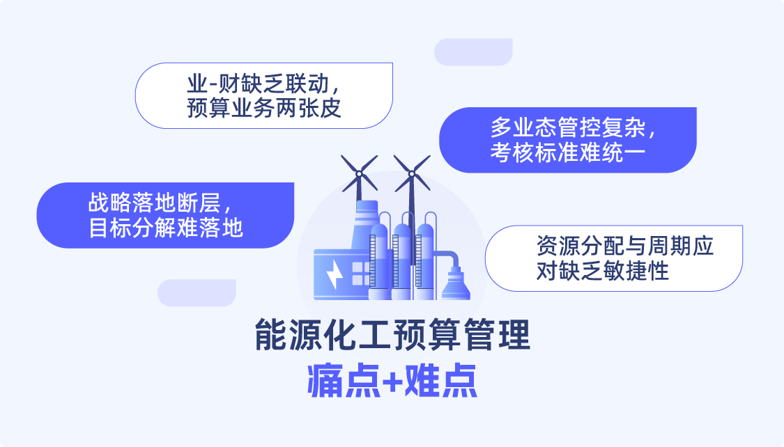 能源化工企业预算管理需兼顾集团统一管控与板块差异化运营,适配行业周期波动与产业升级需求,叠加产业链长、业态属性迥异的特点,核心痛点集中在四大方面: