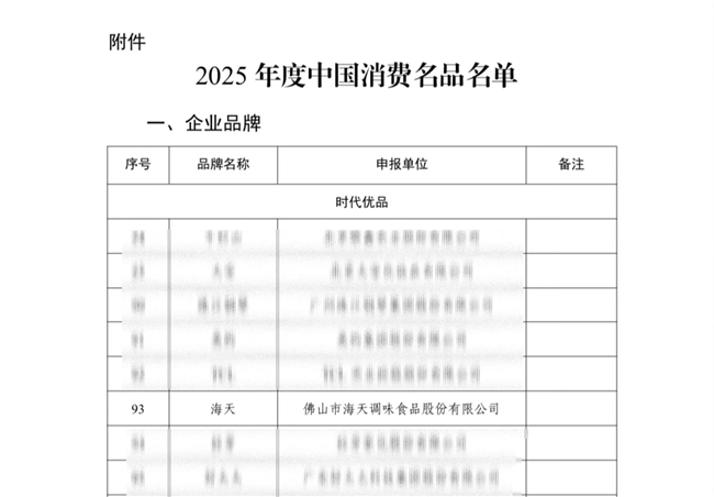 坚守国民品质,引领消费创新,海天入选2025年度中国消费名品