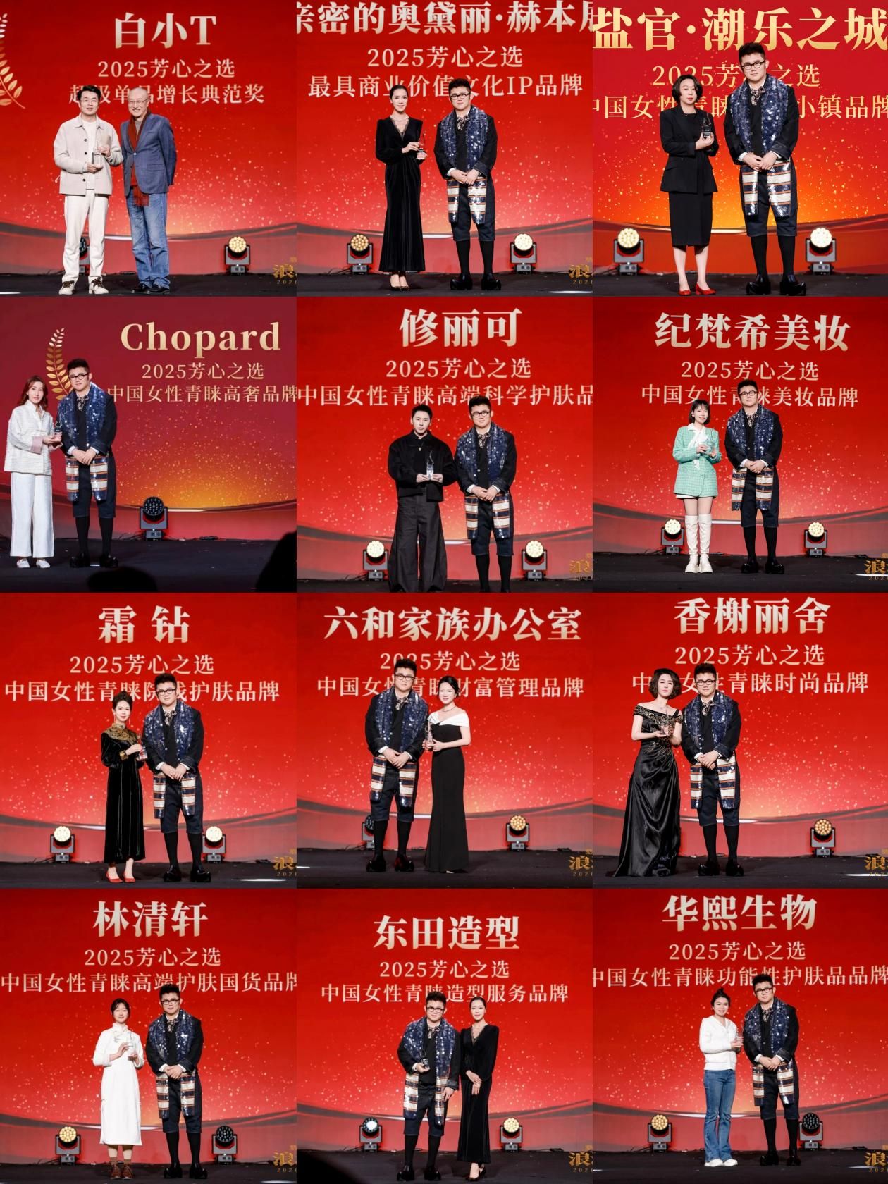 白小T(超级单品增长典范奖)、东田造型(中国女性青睐造型服务品牌)、亲密的奥黛丽·赫本展(最具商业价值文化IP品牌)、霜钻(中国女性青睐院线护肤品牌)、林清轩(中国女性青睐高端护肤国货品牌)、Chopard(中国女性青睐高奢品牌)、修丽可(中国女性青睐高端科学护肤品牌)、华熙生物(中国女性青睐功能性护肤品品牌)、莱蒙商旅(中国女性青睐国际商旅机构奖)、香榭丽舍(中国女性青睐时尚品牌)、绽家(中国女性青睐家清洗护品牌)、六和家族办公室(中国女性青睐财富管理品牌)、盐官·潮乐之城(中国女性青睐音乐小镇品牌)、纪梵希美妆(中国女性青睐美妆品牌)。