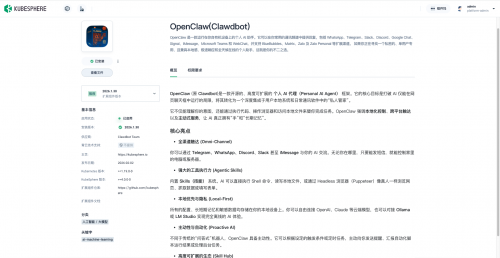 通过KubeSphere,将Clawdbot纳入Kubernetes的统一管理体系,可以在不改变其原有架构和使用方式的前提下,获得标准化部署、可观测运维以及安全可控的运行环境。对于希望长期运行 Bot 服务、或在团队内复用 AI助手能力的用户来说,这是一条非常自然、也非常稳妥的路径。