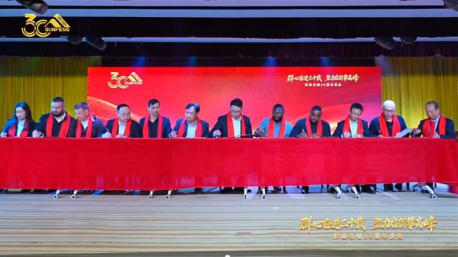 群峰机械30周年庆典现场国内、俄罗斯、东南亚、非洲等 5组客户签约(来源:群峰机械)