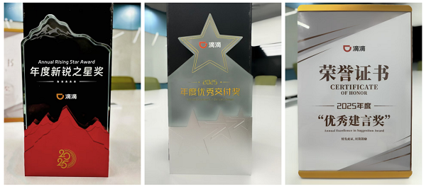 新年伊始,喜报传佳音。1月28日,亿达科创凭借技术服务的高专业性和高可靠性,在滴滴合作商年度大会中连中三元,一举斩获2025“年度优秀交付奖”“优秀建言奖”与“年度新锐之星奖”三项殊荣。其中,亿达科创更是全场唯一摘得“年度新锐之星奖”的企业,这一突出成绩不仅印证了亿达科创在智慧服务领域持续积累的深厚底蕴,更彰显出公司在技术革新与业务突破上的强劲活力。
