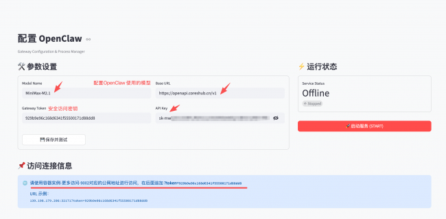 点击 「9001 端口 」对应的公网地址,配置个人的模型参数: