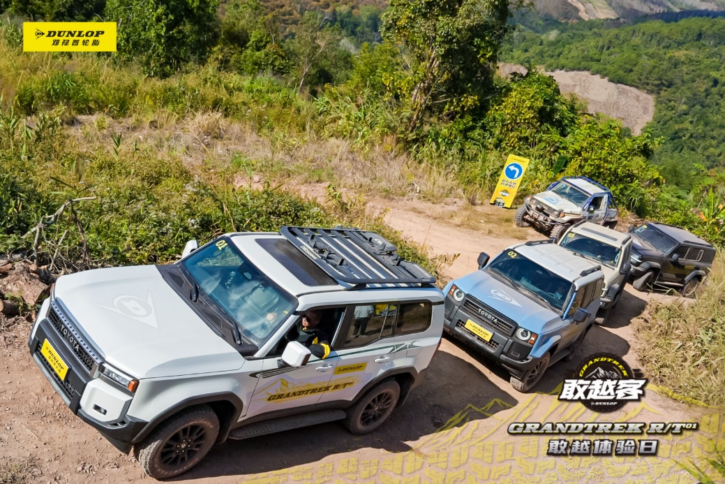 为测试新品性能,在价值链共创大会第二日,邓禄普轮胎于基诺山西双版纳热带雨林越野基地举办了新品试驾会。过程中,GRANDTREK R/T 01的炫酷外观、严苛路况中的强抓地性、抗啃伤性、以及舒适静音性能等都被充分展现。