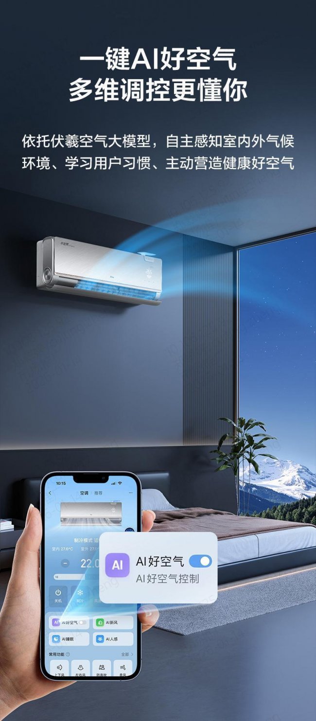 一键AI好空气主动营造健康好空气,智柔风5.0杜绝直吹不适