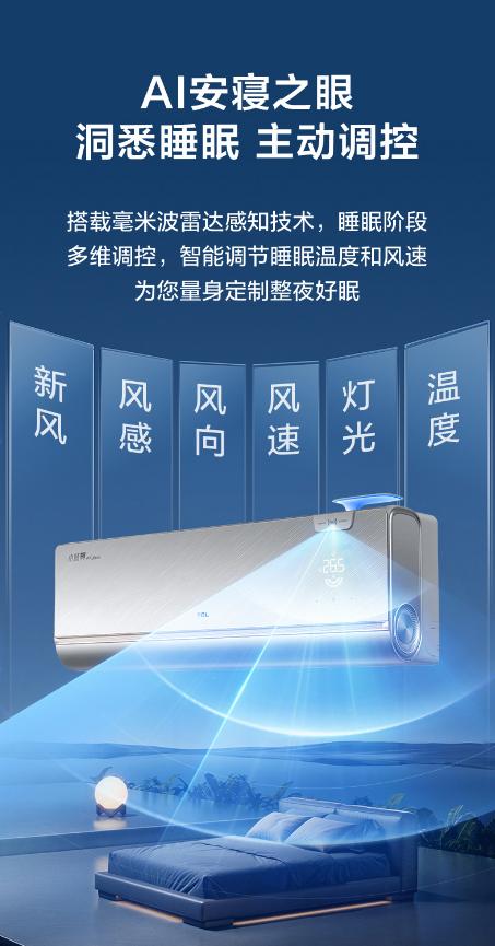 老人夜间易醒,且核心体温随睡眠阶段波动,传统空调固定温度模式难以匹配其生理节律,TCL小蓝翼P7 Ultra AI健康睡眠空调的安寝之眼睡眠科技,通过毫米波雷达感知技术,无需接触即可精准捕捉老人翻身、抬手等细微体动,结合AI算法判断浅睡、深睡、晨起等睡眠阶段,定制专属睡眠温度曲线。