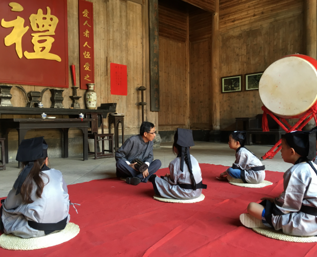 2、威严的祠堂,戒尺先生,在孩子入学之时,用仪式让大家懂敬畏,知晓礼仪,聪明睿智。