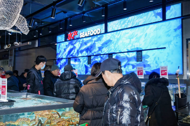鲜活水产区的人气十足,天津靠海,门店不仅在保活率上下功夫,还在价格上给出十足的诚意。139元一只的波士顿龙虾,199元一斤的帝王蟹带给消费者满满惊喜,更有现场烹制服务,无论是堂食用餐,都能让消费者轻松享受到新鲜地道的高品质海鲜美味。