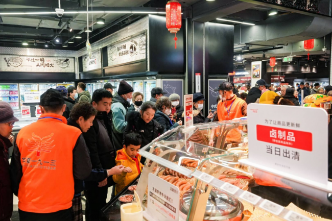 华润万家天津梅江环宇城店在商品力构建上,遵循“全球优品”与“本地深耕”两大特色。在本地融合方面,深度挖掘。店内设置的天津特色专区,引入十八街麻花、耳朵眼炸糕等一批耳熟能详的中华老字号及本地美食,还有华润万家联合本地厂家定制的低盐版老火腿、真空包装熟梨糕等特色商品,让本地消费者找到熟悉的味觉记忆,让外地游客一站式体验津味。