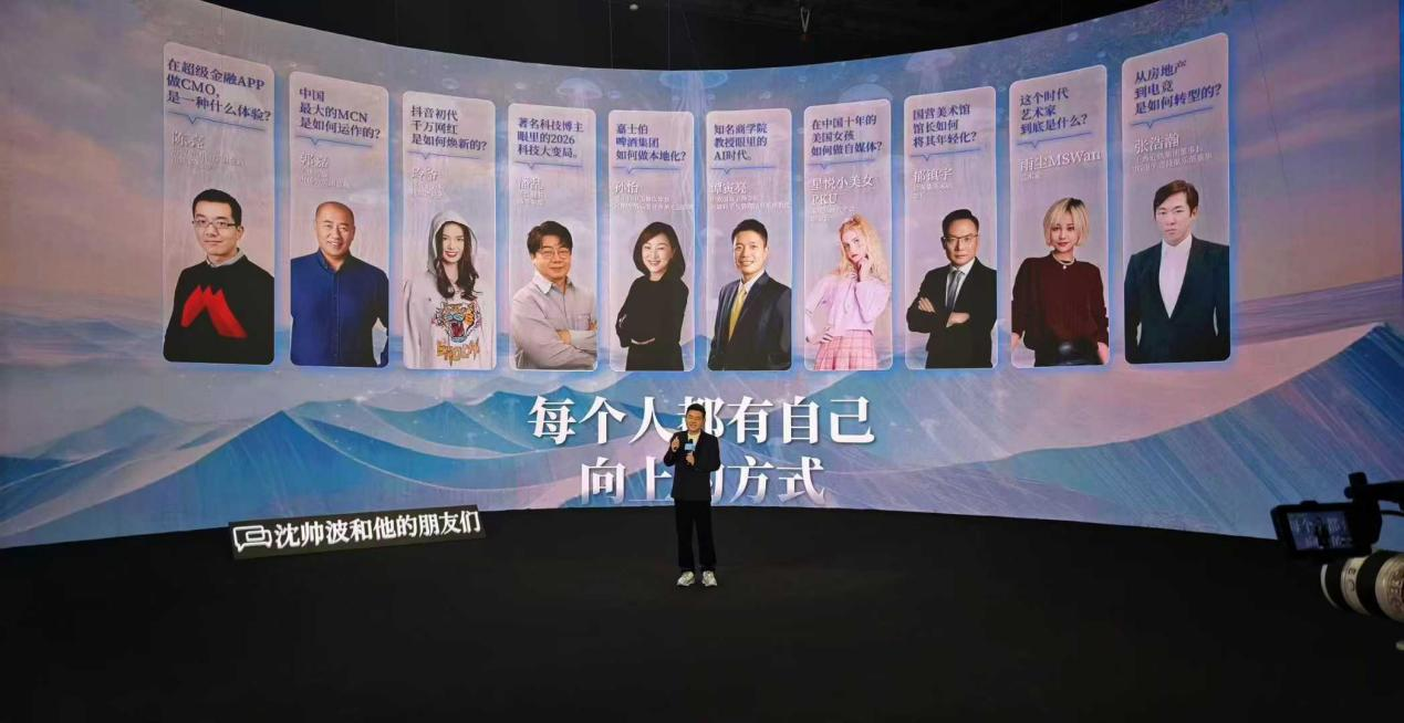 2025年,沈帅波在深度内容领域不断深耕。创新深度内容策划“沈帅波和他的朋友们”已连续举办四季,邀请了诸如阶跃星辰副总裁李璟、欧莱雅北亚及中国公共事务总裁兰珍珍、蚂蚁集团资深副总裁/首席市场官陈亮等科技、消费、教育、艺术、体育等各领域专业人士,收获300万以上直播观看,近亿次曝光。