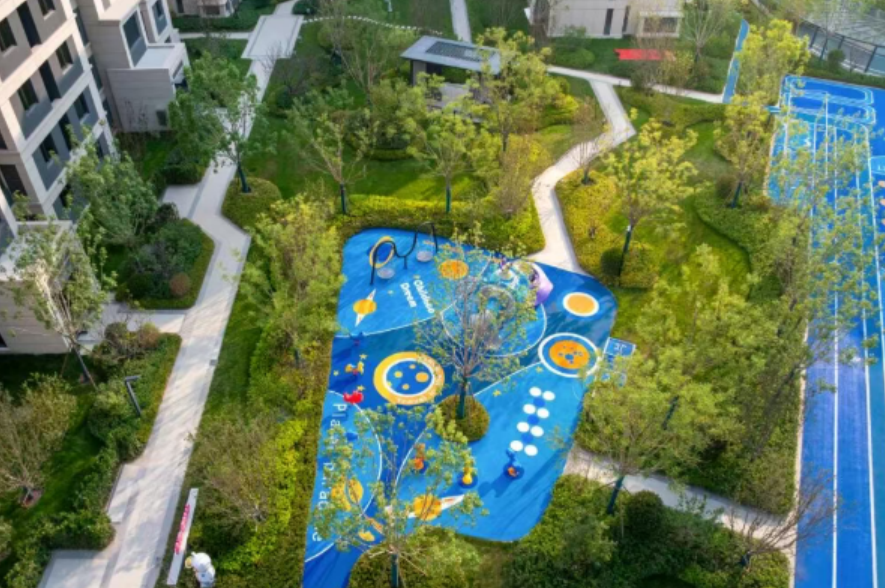 在空间营造上,新城坚持“以人为本”的设计哲学,注重功能与情感的双重满足。在东海之滨的某项目中,约1350米环形跑道串联全龄活动场地,将社区转化为无边界的滨海活力公园,阳光、运动与邻里欢笑构成日常图景;全国首个“品悦系”作品则通过风雨连廊无缝链接儿童乐园与吾悦广场,实现商业便利与度假式生活的有机融合,全架空层被精心打造成多元“第二客厅”,让归家成为一段松弛而愉悦的旅程;另一新中式项目则以“一环、一街、两巷、多园”的严谨格局,结合米黄立面与回形纹路,在中轴对称中营造仪式感十足的归家动线,传统造园手法如对景、借景被巧妙运用于现代生活场景,既传承风雅,又回应当代家庭的真实需求。这些细节无不体现新城对“生活场景构建”的深度思考——家不仅是物理空间,更是情感联结与生活方式的容器。
