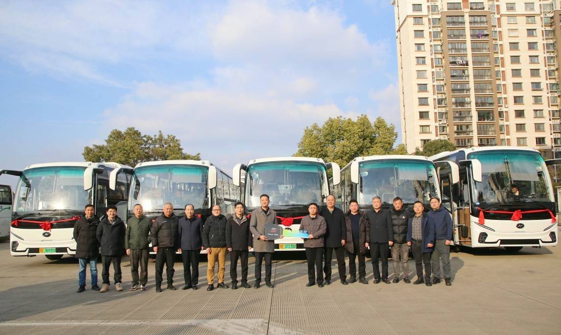 共筑区域出行新生态!批量苏州金龙新V系客车交付张家港港城汽运