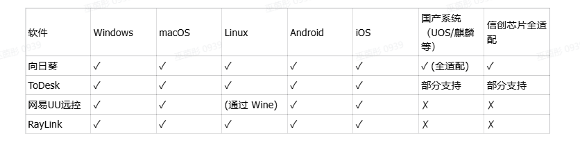 结论:向日葵在跨平台,尤其是对国产信创操作系统和芯片的全栈适配方面最为全面深入;ToDesk和RayLink对主流平台支持良好;UU远控在Linux原生支持上稍有局限。