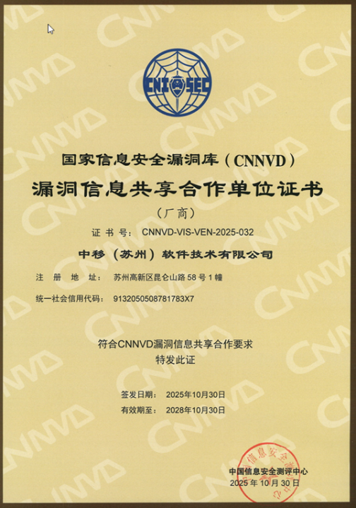 作为云安全领域专家,移动云始终将安全置于自身发展的核心战略位置,并不断推动内核防护能力升级、产品体系完善、服务范式创新,旨在将安全能力深度融入云服务全生命周期,为用户上云、用云筑牢安全屏障。近期,移动云凭借在云安全领域积累的深厚技术积淀与卓越服务表现,相继荣获CNNVD“2025年度优秀技术支撑单位”和“2025年度最佳新秀奖”两项重量级荣誉,并受邀加入由中国信息安全测评中心牵头成立的基础软硬件产品漏洞生态联盟。
