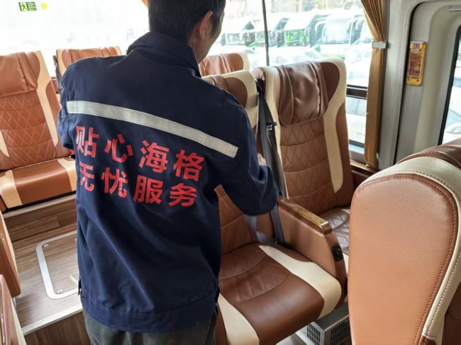 在天气更为寒冷的北部地区,苏州金龙则是开展了冬季送温暖活动,在对新V系等客车进行维保的基础上,海格售后服务团队还特别针对车辆水路等冬天易受影响的部件进行检查,并为客户贴心地赠送了防冻液。2月2日,在甘肃省天水市,苏州金龙上门为天水智慧行旅游汽车服务有限公司的8台新V系客车开展送温暖活动,专业的服务和敬业的精神让客户深受感动,他亲手向海格服务团队赠送了锦旗和手写感谢信。