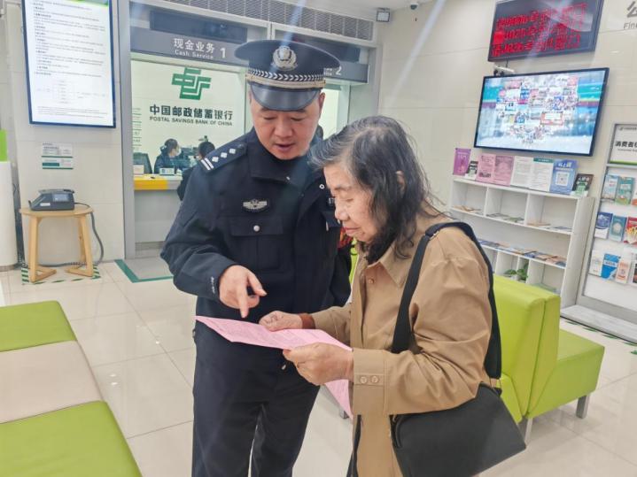 除了员工培训,派出所民警还来到了银行营业厅,对正在办理业务的客户进行反诈宣传,同时也为存在疑问的市民答疑解惑,将银行营业厅打造为面向广大市民的反诈宣传阵地。在等候区显示屏循环播放反诈短片,在填单台摆放反诈提示卡,ATM机旁张贴醒目警示标语,这种将反诈宣传嵌入日常金融场景的做法,实现了对潜在受害群体的精准覆盖。