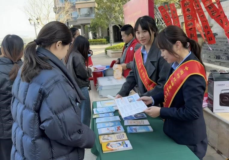 活动现场,书法家们挥毫泼墨,春联上的每一笔每一划都蕴含着对大家新年的美好期许,让在场每一位居民都提前感受到了浓浓的年味,脸上洋溢着幸福的笑容。在传递新春祝福的同时,邮储银行新罗区支行的工作人员同步搭建金融知识宣传阵地。宣传点前,工作人员通过发放宣传折页、现场答疑解惑等方式,向过往居民普及非法集资的常见类型、识别方法及防范技巧。针对岁末年初非法集资活动易高发的特点,工作人员结合典型案例,用通俗易懂的语言讲解“虚假理财”“养老投资”等骗局的套路,提醒老年群体警惕“高收益、零风险”的虚假宣传,引导居民树立正确的理财观念,增强风险防范意识和自我保护能力。