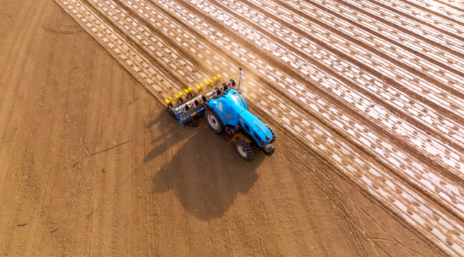 中科原动力无人作业智能农机在高标准智慧棉田开展无人化播种作业