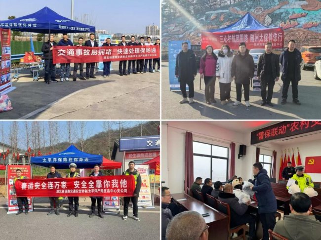 警保联动,护航归途。公司辖内各机构联合公安局、交通管理局开展“警保联动”护航团圆路暨交通安全宣传服务主题活动。武汉、宜昌、随州等机构在交通要道设立“安全服务站”,主动为过往车主提供车险业务咨询、免费车辆检查、玻璃水添加等车辆检修服务,宣传线上理赔流程,并送上饮用水、新春福袋等便民物资,为过往群众送上新春祝福。荆州等机构组建消保先锋队下乡宣讲交通安全知识,向村民发放安全头盔,为村民的电动车、摩托车张贴反光条,同时围绕保险政策、消费者权益保护、防范非法集资等内容开展金融知识宣传教育,切实提升村民风险防范意识与保险认知。