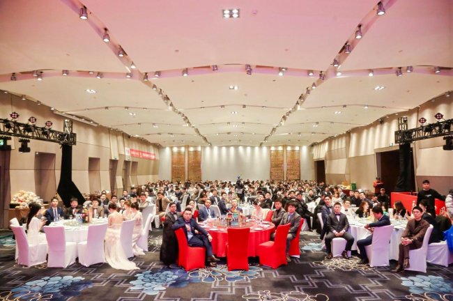年会晚宴在董事长的祝酒中正式开启,大家共同举杯,庆贺美好未来。