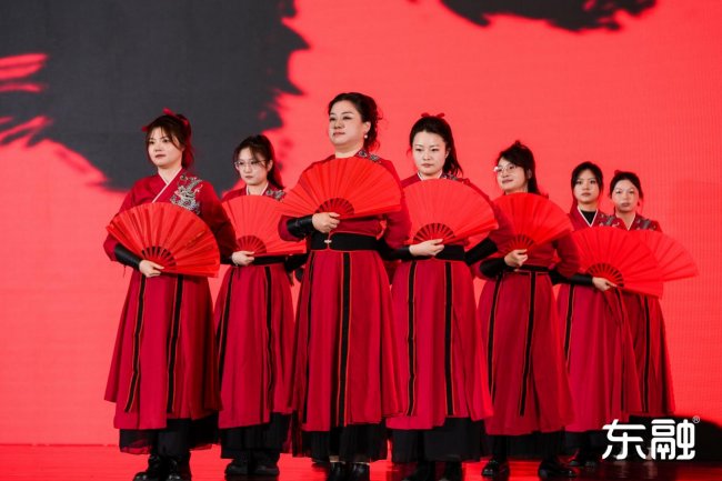下半场的舞台精彩纷呈,有气势磅礴的国风舞蹈、深情动人的吉他弹唱、令人捧腹的小品表演、充满民间智慧的二人转、绚烂多姿的民族舞……多才多艺的东融人自编自演,献上了一场视听盛宴,赢得了满堂喝彩。