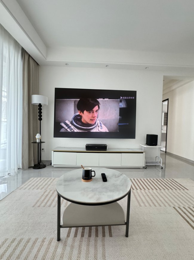音质方面,该系列根据不同尺寸做了精准的声学匹配。120寸版本搭载了哈曼卡顿硬件,配合独立低音炮,形成2.1.2声道,功率高达110W。两个天空音单元垂直向上发声,通过屋顶反射营造出真正的三维空间感。当你观看动作大片时,炮弹的轨迹不仅从眼前划过,更从头顶掠过,这种沉浸感正是家庭影院电视的魅力所在。