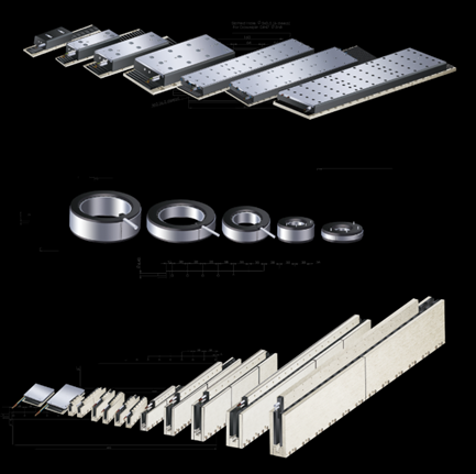直得机械 CHIEFTEK的微型滑轨广泛应用于精密量测、电子业、自动化产业与半导体领域,并已拓展至大型滑轨产品,其中ARC系列主要应用于自动化设备;HRC、ERC系列针对工具机等高负载机器设计,具备高刚性特性;ARR、HRR、LRR滚子式线性滑轨可提供更高刚性、高精度,全面满足线性滑轨与工业机器人市场的多元化需求。同时,直得布局线性马达系列产品,推出的无铁心式线性马达P系列,助力机台高速化、高精度化;铁心式线性马达C系列,兼顾精密传动与直驱技术两大方向。
