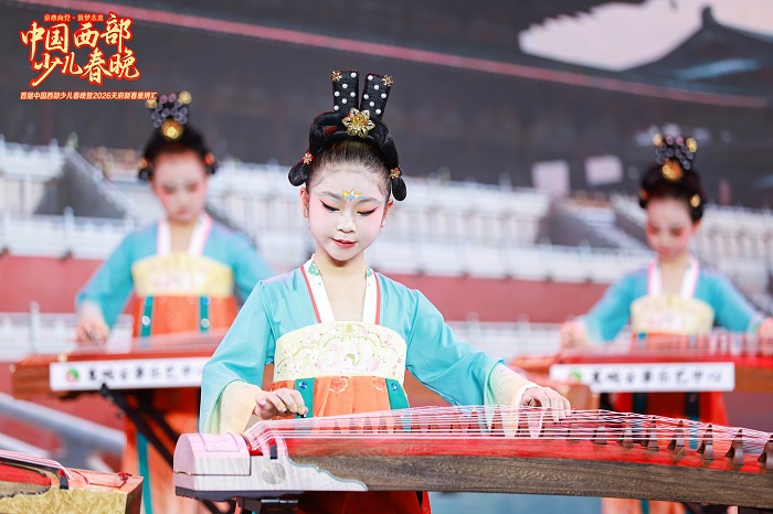 2026年中国西部少儿春晚的舞台上,蕙畹古筝乐艺中心的小演奏家们以四组风格迥异的古筝作品,完成了一场跨越新春欢腾、经典蒙学、盛唐风华与市井烟火的国乐盛宴。从点燃年味的欢歌到浸润心灵的吟诵,从恢弘壮阔的历史回望到鲜活生动的生活描摹,孩子们用扎实的指法与灵动的表现力,让千年筝音在少儿舞台上焕发全新活力,成为本届春晚中一道兼具文化厚度与童真气息的亮丽风景。