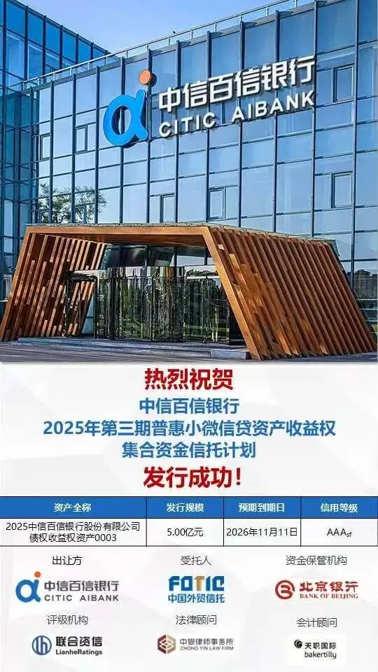 中银律师助力中信百信银行2025年第三期普惠小微信贷资产收益权集合资金信托计划项目成功落地