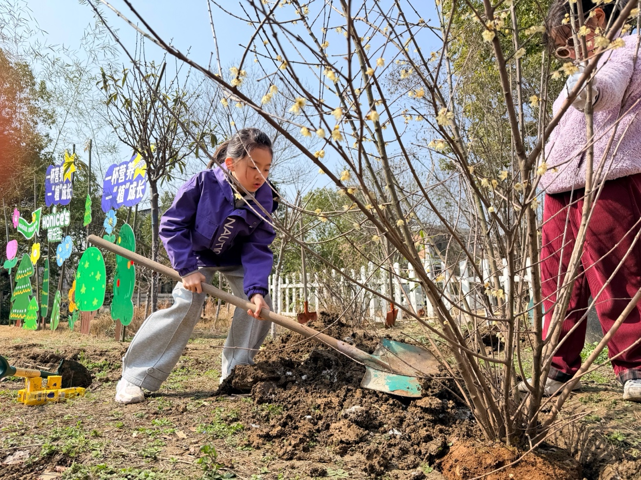 活动现场,孩子们手执铁锹、扶正树苗、覆土浇水,每一步都认真投入。身穿紫色外套的小女孩专注铲土的画面,成为活动中最动人的瞬间之一——正如荷乐士所倡导的“自然成长”,每一棵小树的扎根、抽枝,都离不开阳光、土壤与时间的共同滋养,而孩子的成长亦如是。