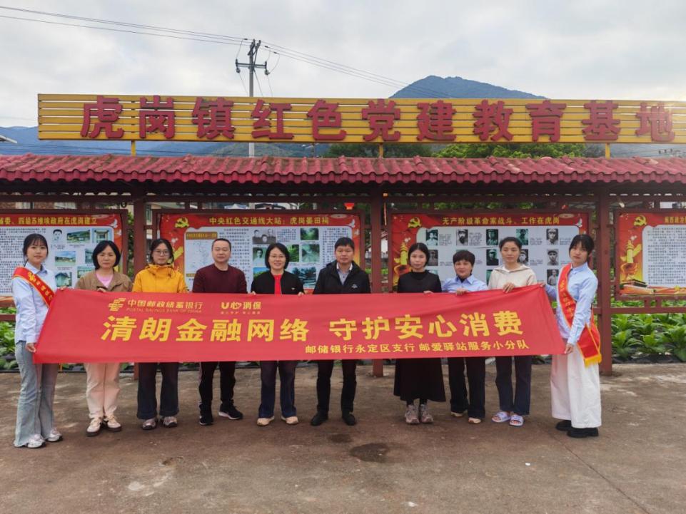 为进一步普及金融知识,防范金融网络乱象,切实守护农村群众的“钱袋子”,近日,邮储银行永定区支行“邮爱驿站” 服务小分队走进永定区虎岗镇虎西村,开展了一场主题为“清朗金融网络,守护安心消费”的金融知识宣传活动,把实用的金融 “干货”送到村民家门口。