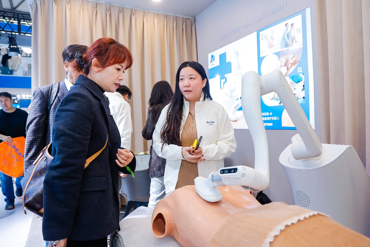 作为荣泰突破传统按摩椅形态的标志性产品,AI 理疗机器人阿而泰 ART500 在本次 AWE 展台上同样备受瞩目。它跳出了 “座椅式” 的固定形态限制,以更灵活、更专业的智能理疗体验,推动家庭健康护理迈向智能化、标准化新时代。