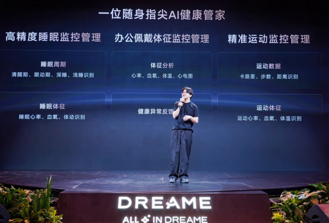 发布会上,追觅全球AI硬件事业群总裁潘志东发表主题演讲,与现场媒体、合作伙伴及消费者共同见证AI智能穿戴赛道的全新里程碑,同时深度解读了追觅在智能穿戴领域的研发理念与产品核心优势。潘志东表示:“我们始终秉承‘所有的硬件都值得用AI重新做一遍’的理念,深耕用户核心痛点,致力于打造好看、好用、耐用,能让AI真正服务于人的好硬件产品。此次发布的追觅AI戒指Glow,是我们在AI健康穿戴领域的又一次颠覆性突破,旨在用‘戒指+AI’的创新模式,打破专业健康管理的高门槛,让人人都能轻松拥有专属的指尖健康管家。”