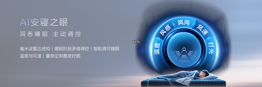 据艾媒咨询《2025年AI世代健康睡眠白皮书》显示,当前中国有5亿睡眠障碍人群,睡眠经济市场规模预计2027年将突破6500亿元。作为卧室环境的核心设备,空调正迎来“睡眠空调”的黄金发展期。