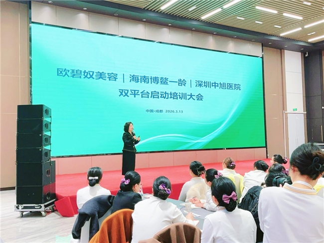 2026年3月13日,欧碧奴美容连锁携手成都奕龄颜、海南博鳌一龄、深圳中旭医院团队,在成都正式拉开“欧碧奴·奕龄颜 双平台启动培训大会”的序幕。此次大会以“携手共创大健康产业新征程”为主题,旨在响应“健康中国”号召,标志着拥有二十年发展历程的欧碧奴正式启动全方位的战略转型——从单一的美容服务商向“美丽与健康并重”的大健康综合管理平台跨越。