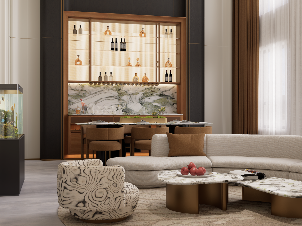 在金佰威构筑的场域空间里,那些本能独自成景的细节,不会喧宾夺主,而是在空间的尺度、气韵里安静地退后,它们不争不抢,不言不语,只会在你目光所及、指尖所触的每一个瞬间,给与回应。奢华,隐于无形,却也无处不在。