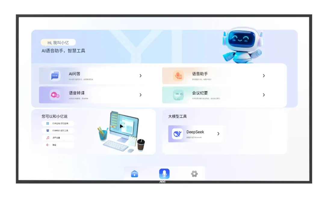 AOC NT系列基于DeepSeek大模型,集成了四大AI核心功能,能在会议过程中被快速调用,极大提升了会议的智能交互水平。