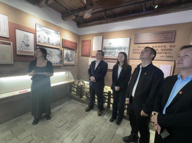 座谈结束后,双方党员共同前往上南村万源楼、初心楼红色教育基地参观学习。在万源楼,斑驳墙面、旧照片与珍贵文物承载着革命记忆,在上南村阮书记的讲解下,党员们认真聆听红色故事,重温1926年阮山等革命先辈秘密集会、点燃闽西革命火种的峥嵘岁月,感悟革命先辈坚守信仰、扎根群众的初心担当。在初心楼,党员们驻足主题展区,通过文献资料、历史实物,深入了解上南村革命时期的光荣历史与新时代乡村振兴的丰硕成果,接受了深刻的党性教育和精神洗礼。