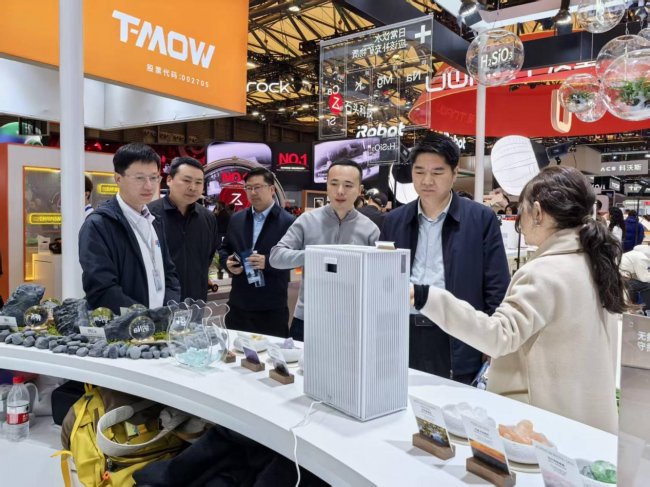 开幕当日,信阳市罗山县领导一行莅临家里泉展台,深入了解联合中国地质大学(北京)共同研发的矿物重生专利技术及新产品矩阵。领导们对家里泉推动健康观念、产学研结合的模式表示认可,并高度评价家里泉“以天然矿物科技重塑健康人居”的技术方向,充分肯定其在核心材料研发与成果转化方面的创新模式。作为信阳重点引进的矿物科技标杆企业,家里泉依托与中国地质大学的产学研合作,构建了从矿物材料研发到终端应用的全链条创新体系,这种“政产学研用”一体化模式为地方产业转型升级提供了可复制范本。