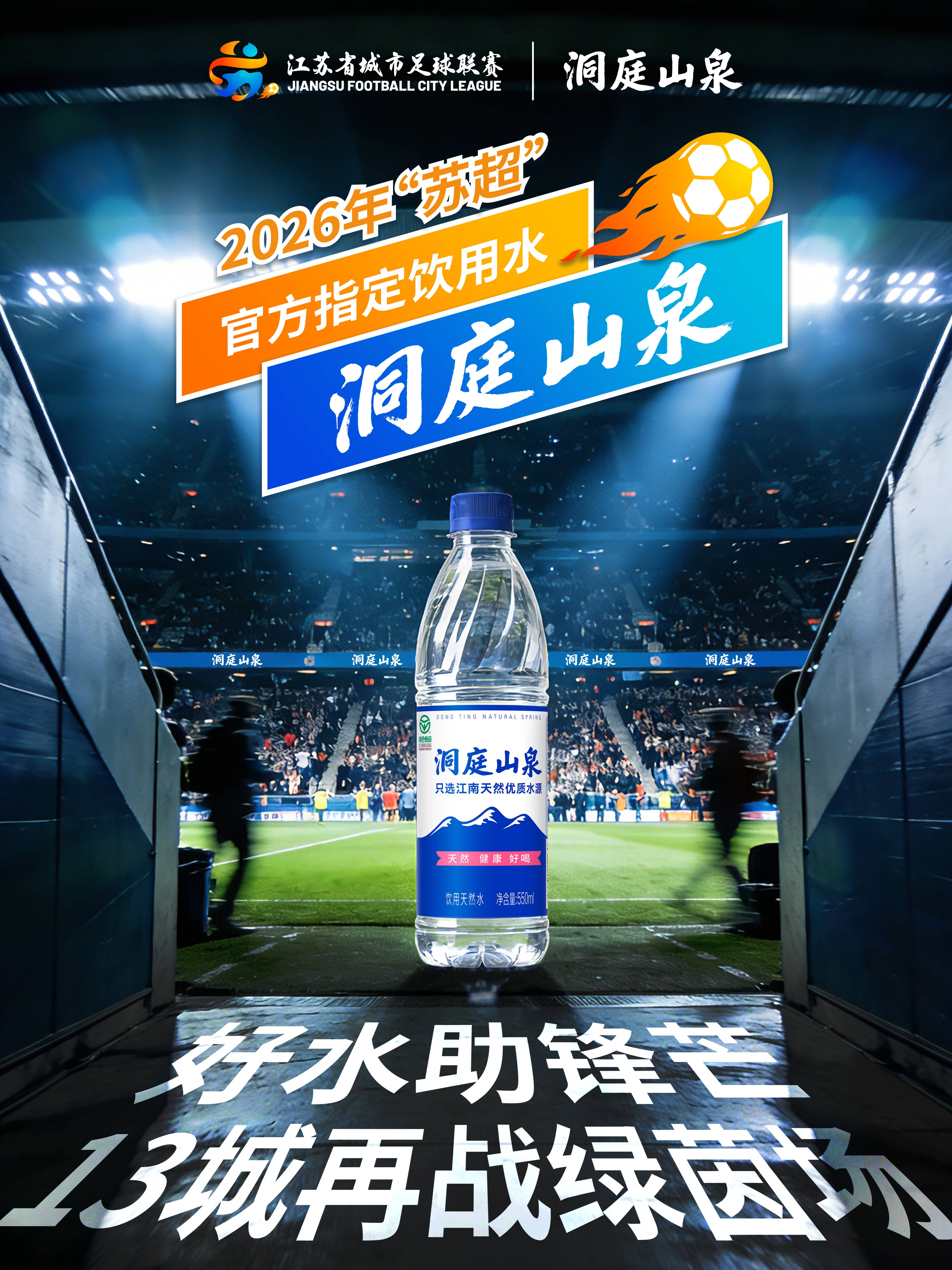 近日,洞庭山泉集团正式官宣,成为2026年江苏省城市足球联赛(简称“苏超”)官方指定饮用水。此次合作是洞庭山泉集团布局体育赛事IP、链接全民健康生活的重要举措,品牌将以天然健康好水为纽带,连接体育赛事与城市文化,为绿茵赛场注入更具温度的健康力量,与万千球迷共赴热血之约。