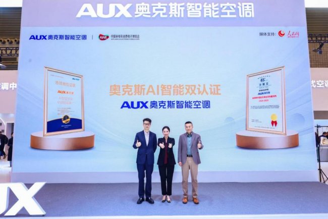 在此次博览会现场,奥克斯凭借在智能空调领域的持续深耕,荣获沙利文与奥维云网双重权威认证——"智能空调全球销量领先"与"AI 智能空调中国销量第—",这也意味着中国智能空调行业标准迈入了全新的阶段。