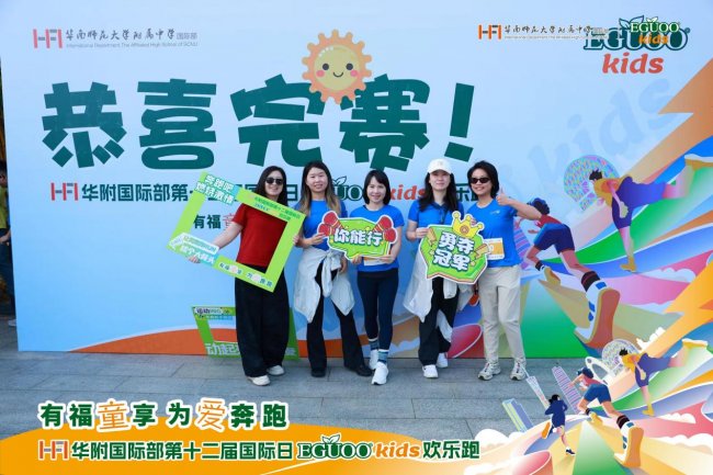 这场以“有福童享,为爱奔跑”为主题的公益盛事,由华南师范大学附属中学国际部、广州市社会福利院主办,HFI家委会、长跑社、蜗牛跑团联合主办,广东新中体育集团有限公司承办,近500名HFI师生、校友、家长及社会爱心人士齐聚一堂,以奔跑之名为广州市社会福利院的孩子们传递温暖与希望。作为冠名赞助商,EguooKids全程助力此次活动,将品牌对儿童成长的关注与公益初心融入每一步奔跑,用实际行动践行企业社会责任。