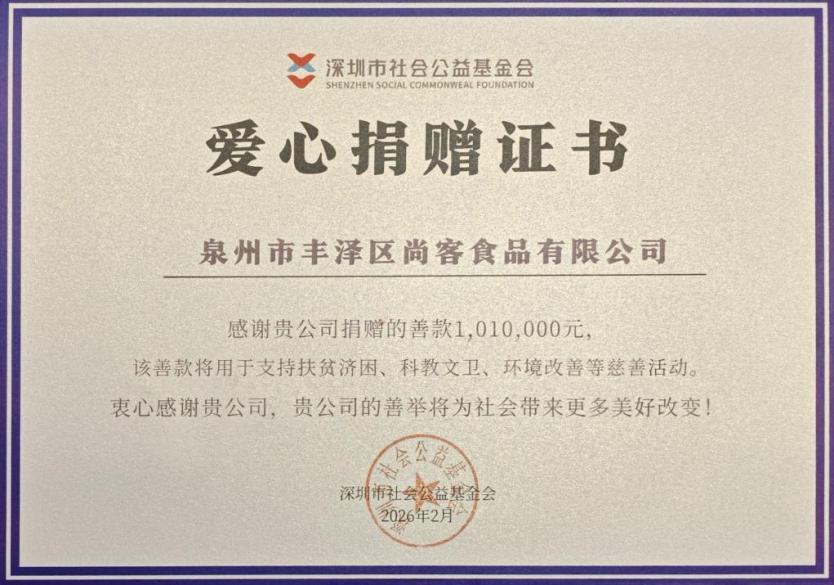 此次比比赞(尚客食品)捐赠的 101 万元善款,将依托深圳市社会公益基金会专业、规范的公益运作体系,精准投向扶贫济困、科教文卫、环境改善三大民生刚需领域,切实发挥公益善款的实际效用。