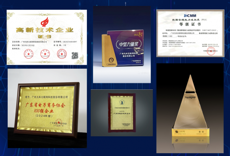 凡科的技术创新亦获得多项行业奖项肯定。其产品“凡科商城”在2020年3月入选广东省工业和信息化厅“第一批数字技术产品和解决方案”,凡科亦连续多年获评“高新技术企业”“广东省守合同重信用企业”等称号,更是通过“数据管理能力成熟度评估模型(DCMM)三级认证”,在技术实力与商业信誉上得到双重印证。