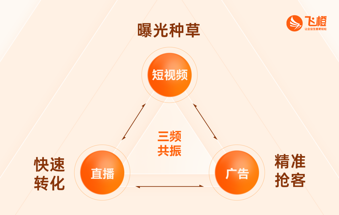 这就是“短视频(曝光种草)+ 广告(精准抢客)+ 直播(快速转化)”的三频共振模型。