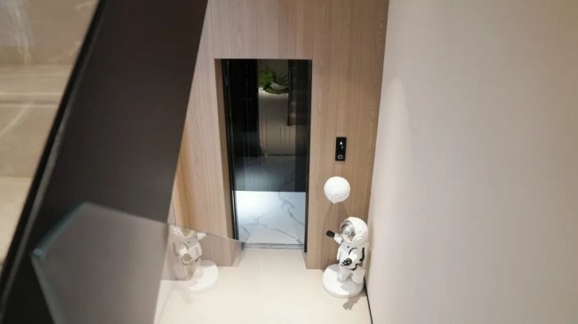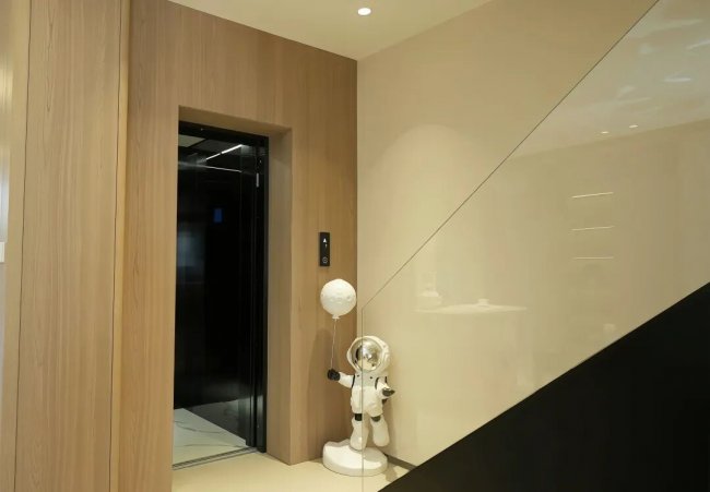 别墅预留了电梯井,这意味着电梯需要与现有井道精确匹配。弗朗茨的团队进行了精密的测量,确保电梯尺寸、开门方式、安装位置与井道条件和装修风格完美契合。基于这些数据,团队为业主量身打造了经典的土建电梯安装方案,实现了高效作业的同时,巧妙地将电梯置于低调、隐形的环境之中。