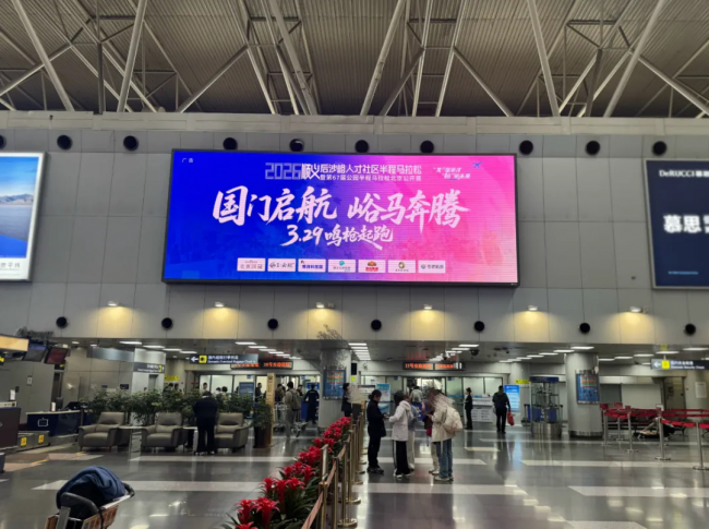 近日,由引领航旅助力的“2026顺义后沙峪人才社区半程马拉松暨第67届公园半程马拉松北京公开赛”宣传海报,正式亮相首都机场T2、T3航站楼核心广告大屏,以“国门启航峪马奔腾”为主题,在国门枢纽向全球旅客传递赛事活力与品牌力量。