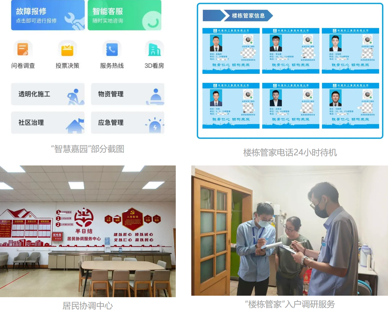 楼栋管家:配备专属“楼栋管家”,上门入户收集诉求,打通服务“最后一米”。