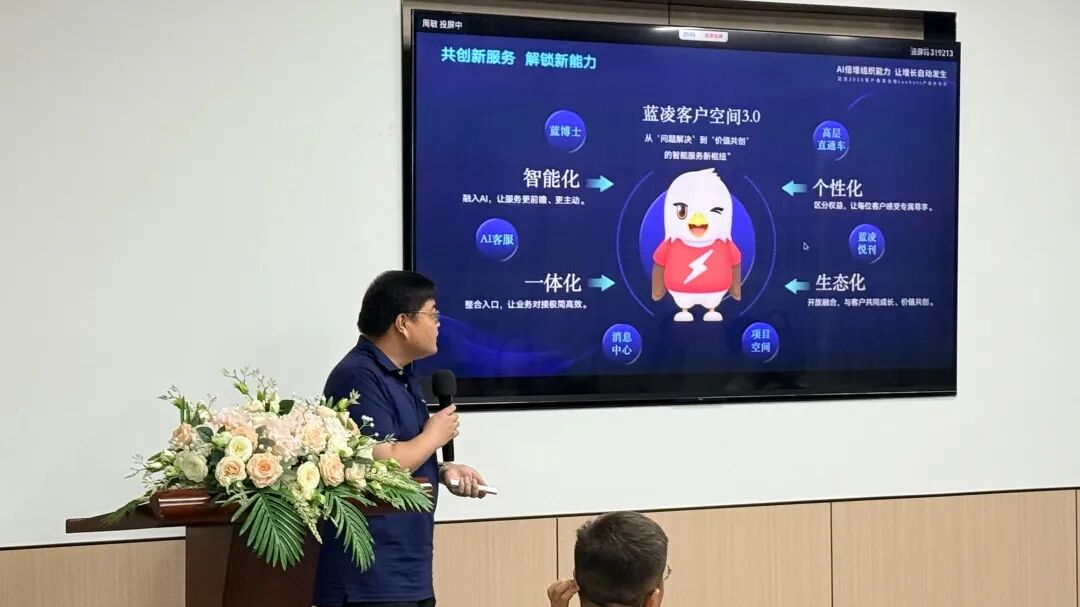 客户服务部则介绍了蓝凌为AI应用配套的全流程服务体系。从前期的业务咨询与价值共识,到中期的样板建设与项目推进,再到持续的知识治理与敏捷交付,蓝凌以系统化的服务能力,确保AI从规划到落地的每一个环节都有据可依、有章可循,助力客户真正实现价值闭环。
